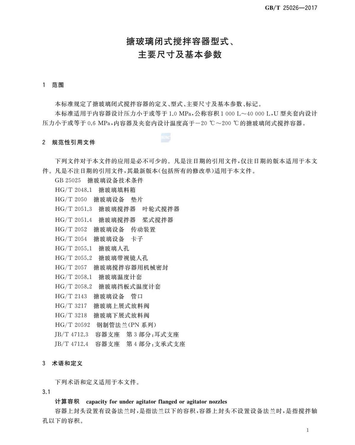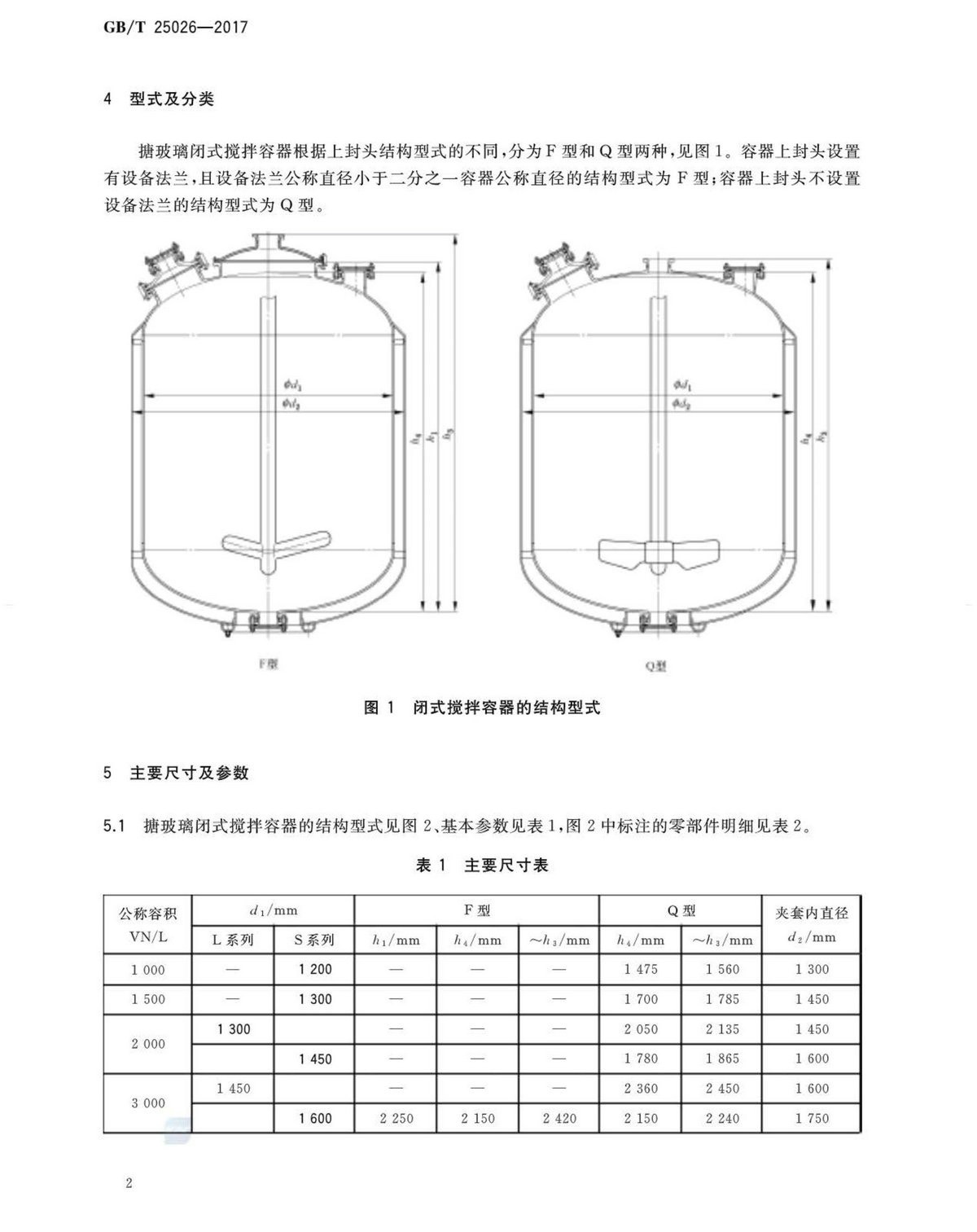 GBT25026-2017搪玻璃閉式攪拌容器型式、主要尺寸及基本參數(shù)