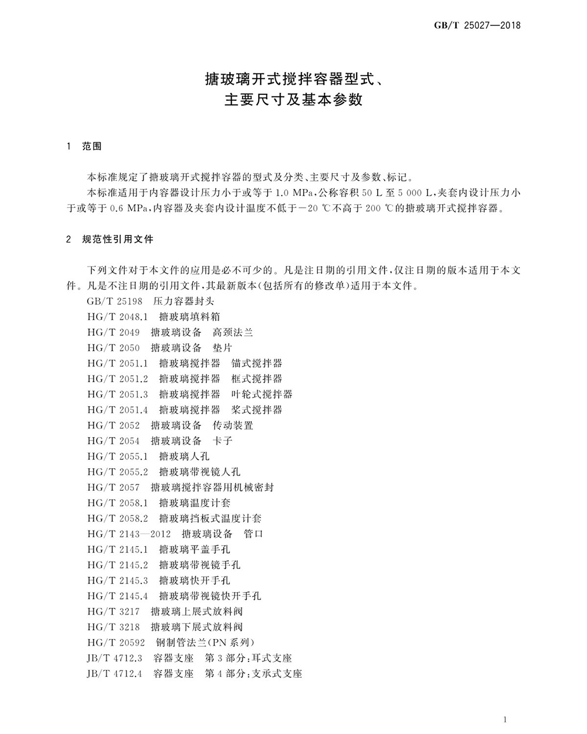 GBT25027-2018搪玻璃開式攪拌容器型式、主要尺寸及基本參數(shù)