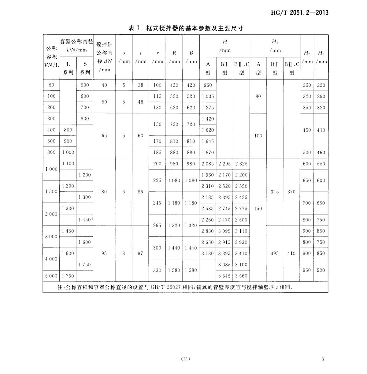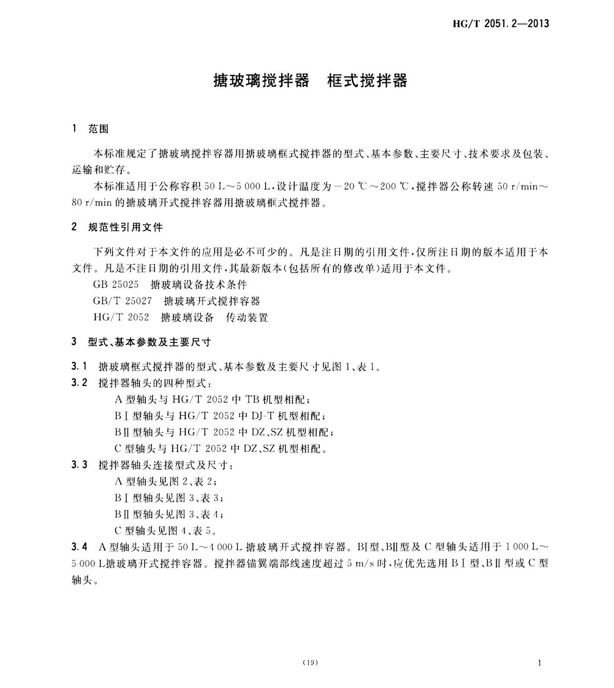HGT2051.2-2013搪玻璃攪拌器框式攪拌器