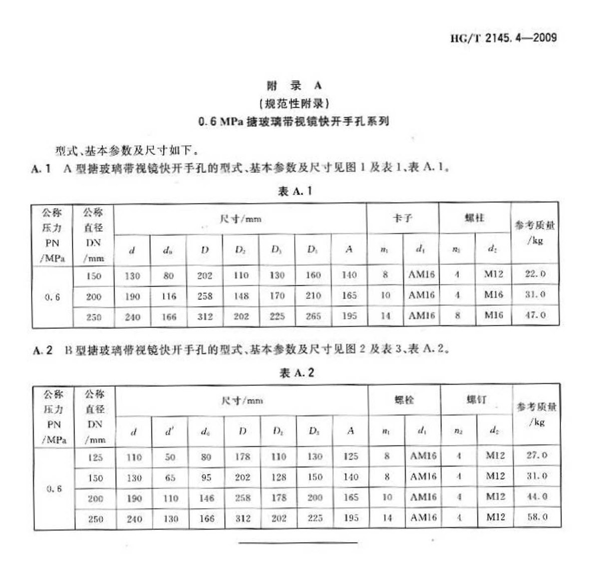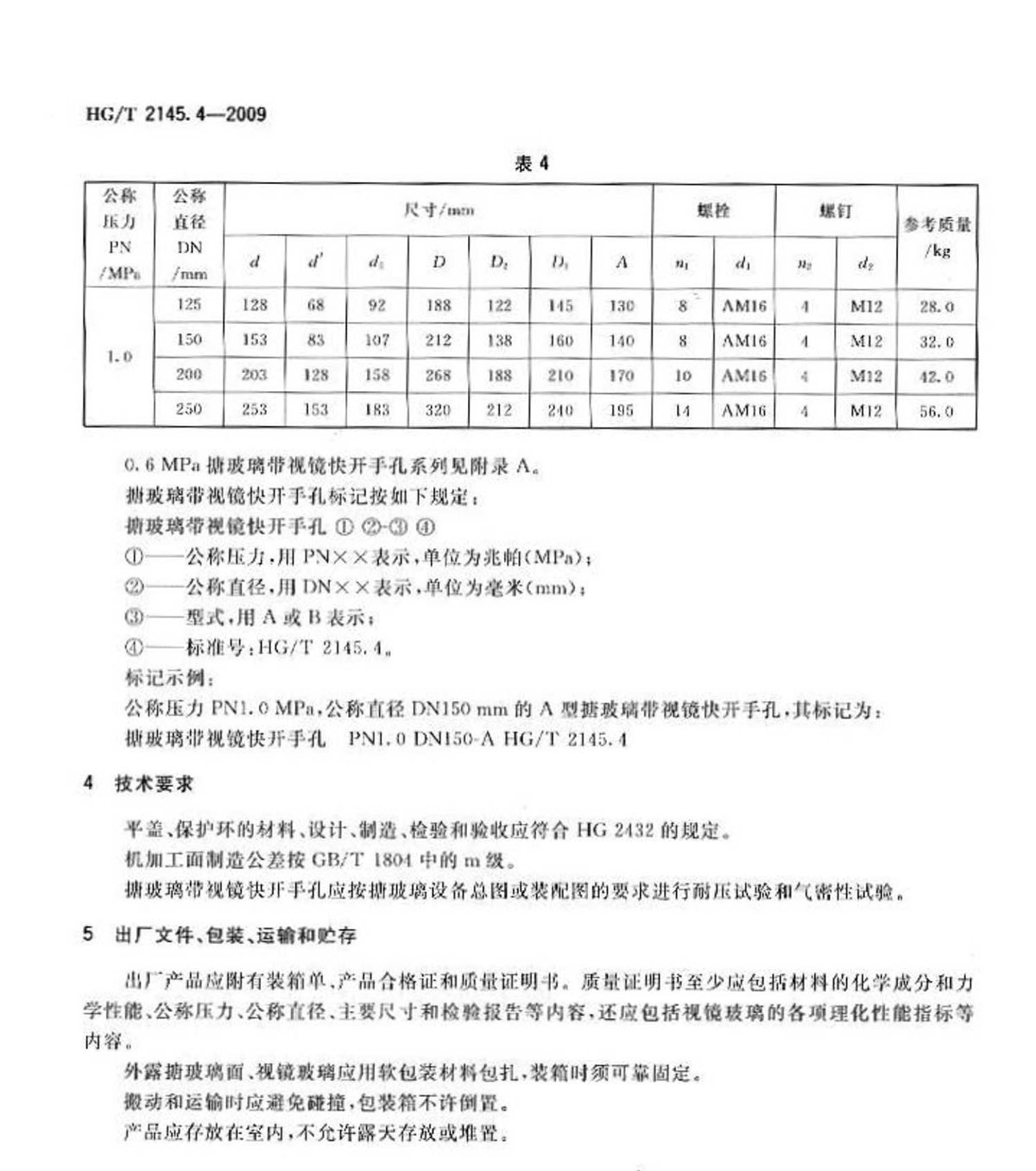 HG-T-2145.4-2009搪玻璃帶視鏡快開手孔