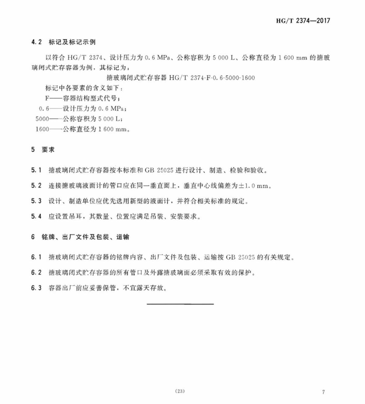 HG-T-2374-2017搪玻璃閉式貯存容器